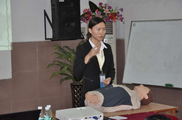為了充分發揮本次培訓的作用,讓大家可以把理論與實踐相結合,并學以致用。特在現場抽出人員進行模擬學習心肺復蘇急救、人工呼吸、穴位按摩等。現場在活躍、愉快的氣氛中結束了本次的培訓講座。