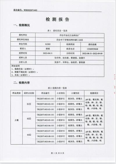 四會(huì)市金達(dá)五金廠土壤檢測(cè)報(bào)告