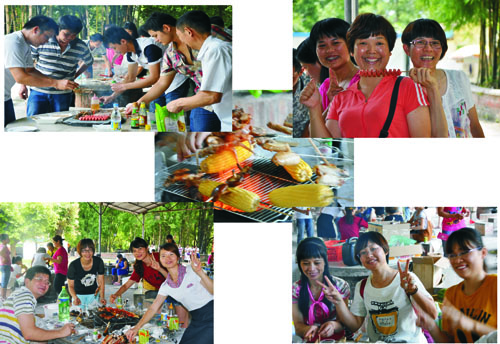 7月26日10:30,我們興高采烈地齊聚在金達公司大門,帶著豐富的美食、懷著陽光一樣的心情前往丹灶仙湖燒烤場。來到仙湖,天公作美、陽光明媚確是個戶外活動的好日子,大家早已迫不及待地開始生火、串雞翅、魷魚、火腿……。 相互協作、分工明確,一會兒,燒烤場中炊煙裊裊,一串串美食烤于爐中,慢慢地空氣中飄逸著美食的味道 。伴隨著音樂,我們繞著爐中坐,拿叉、涂料地有說有笑、各施其招 ;有的烤得外熟內生,有的天生就是廚子;時而引起周圍游客們投來羨慕的目光。到正午時天氣雖然有點熱,但早已與陣陣的歡笑聲中散走了。隨著打鬧、玩耍、游戲、觀光,很快斜陽已降臨,歡樂的聲音游蕩著,我們用相機在這里留下了美好的回憶,圓滿地結束了活動,踏上了回程的路上。